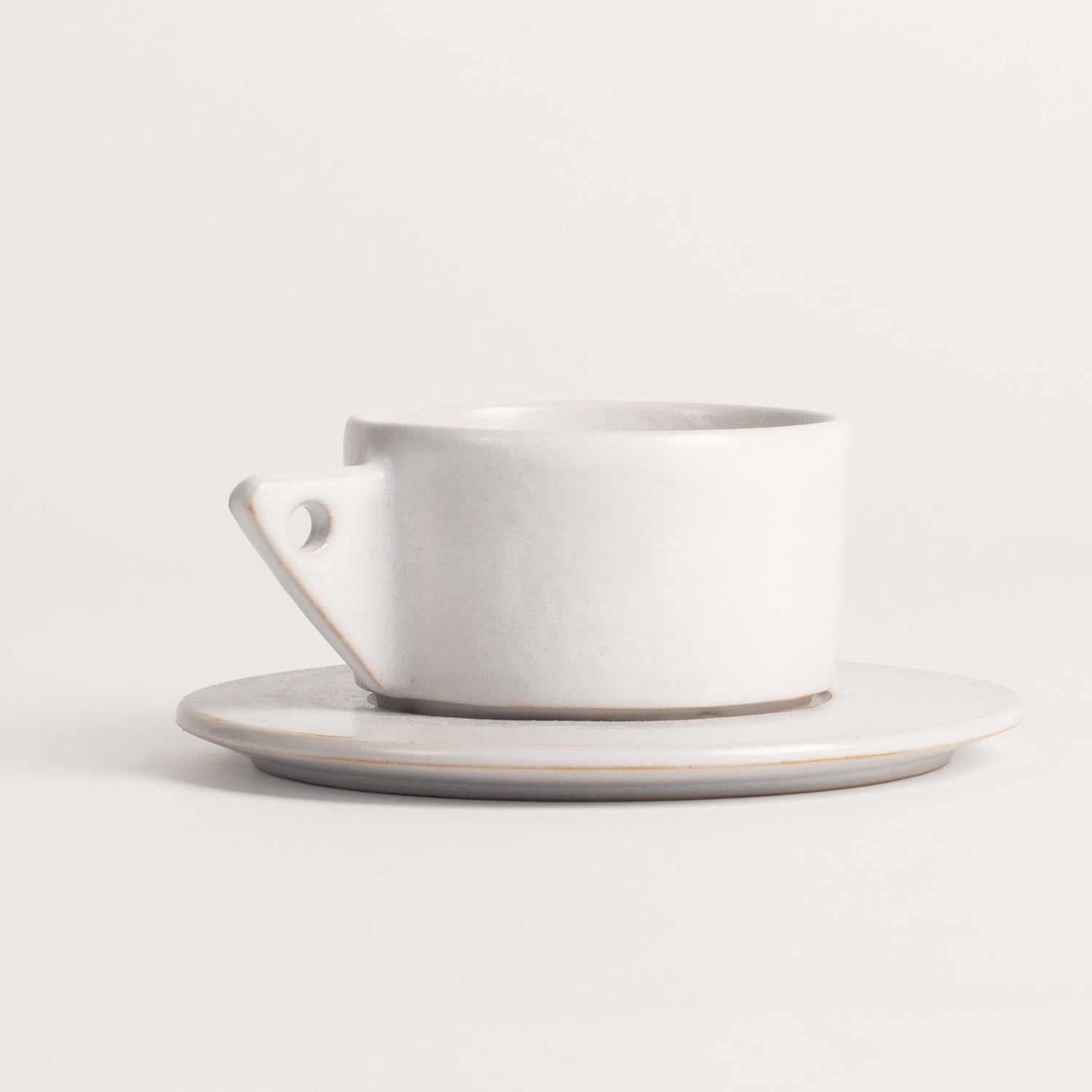 La tasse à café Milano fait partie de ces pièces créées à trois, Louis, l’artisan céramiste et moi-même. Nous voulions dessiner une tasse d’un format moyen avec une anse et une soucoupe, idéale pour les cafés allongés et les macchiati.