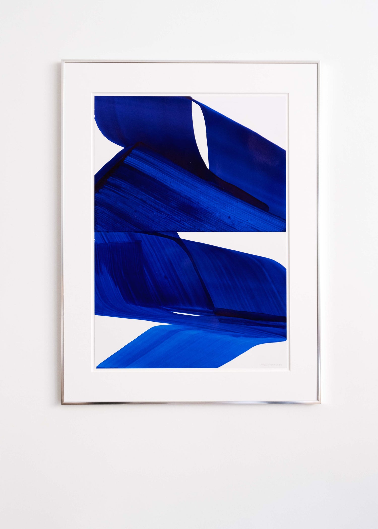 Diving Blue, poussée dans l’abstraction complète et dans une démarche dépouillée de tout discours si ce n’est celui de la peinture en tant que telle.